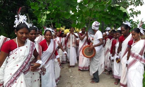 Gossaigaon: The members of the Mahila Association of Dhan Gola organized a day long programme at Nasrailbil village under Gossaigaon sub-division of Kokrajhar district to celebrate the 2nd Karam Festival. The main theme of the festival was “The greatness of rich adivasi culture shall always keep the society united.” The programme started with the flag hoisting followed by bringing their religious Karam tree with a cultural procession.