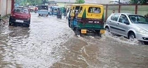 Dibrugarh: Many parts of the town were reeling under flash floods on Tuesday after a spell of downpour that continued for a long time. The stretch from Bagchipara to Hotel Monalisa on the Mancotta Road, stretches of the Chowkidinghee main road, several parts of the RKB Path and Thancharali and portions of Graham Bazar, among others, were seen to be inundated in varying levels. Moreover, people living in the Santipara area had a harrowing time in the morning hours as most of the lanes in the area were flooded due to the overnight deluge, which also affected the upper reaches of Arunachal Pradesh along with other parts of Assam.