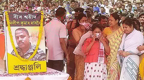 PATHSALA: Dilip Kumar Das, an inspector with the 210 battalion of the Central Reserve Police Force (CRPF), who sacrificed his life for the nation in Maoist attack in Chhattisgarh, hailing from the newly-created Bajali district of Assam, was cremated with full state honours on Tuesday.