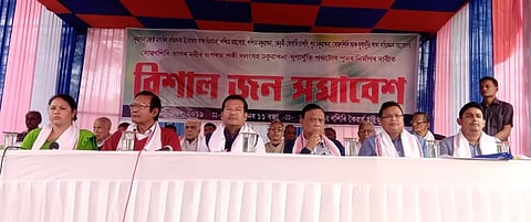 The event was held at Subansiri Kaibarta High School playground in association with Dhakuakhana, Ghilamora, Pachim Machkhowa, Pachim Dhakuakhana, Kekuri-Sonari Chapori, Pub Dhakuakhana, Subansiri and Ghunasuti branch units of Dhakuakhana District Senior Citizens’ Association. It commenced with Dhakuakhana Senior Citizen Association president Purnananda Gogoi in the chair. Senior citizen Bhola Gogoi inaugurated the event wherein Basudeva Than Naruwa Xatra Xatradhikar Bhupendra Goswami, senior citizens, advocate Sonadhar Patir, social activists and other citizens delivered informative speeches on the issue.