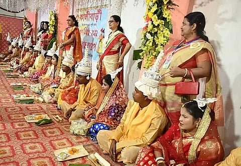 "It is the first occasion where I am witnessing a mass marriage and it is also a rare and memorable moment for me. I am standing in the temple of Goddess Kali and pray to the goddess to bless all the couples. I wish them a happy conjugal life," Barla said. He also presented one Chandan seedling and a gold ring to each couple with good wishes and blessings.