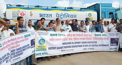 The Numaligarh Refinery Oil Tanker Association staged strong protest against government’s decision on the privatization of BPCL and NRL at the Marketing Terminal of NRL. Slogans like “Save BPCL, Save NRL”, “Modi Government Go Back”, “Respect the sacrifice of 855 martyrs” were uttered during the protest. President Bhaskarjyoti Gohain and spokesperson Priyangdeep Kakoti of the Numaligarh Refinery Oil Tanker Association stated that being a Central government PSU, BPCL is also regarded as the backbone of India’s economy. Privatization of the core sector may derail the country’s economy that may put oil security at a great risk. They also alleged that selling of these national assets is also regarded as a misanthropist act against the nation. A memorandum was also sent to the Prime Minister, taking into consideration the strategic importance of core sectors PSU like BPCL and NRL requesting to stop government’s plan regarding privatization/stake sell of government in BPCL in the larger interest of the country.