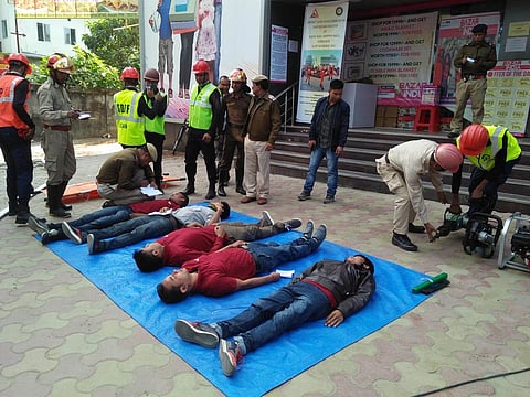 District Disaster Management Authority, Kokrajhar in collaboration with State Disaster Management Authority and National Disaster Management Authority organized the major earthquake simulation drill on Thursday in Kokrajhar with the aim and objective of reviewing disaster management plan and responsibilities of various stakeholders of the district at five identified venues like Bazaar India, City Life, Hotel Gaurang Valley, Kendriya Vidyalaya and RN Brahma Civil Hospital.