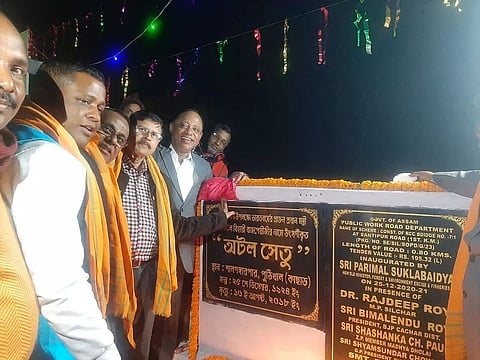 DHOLAI: In line with the observation of Good Governance Day (Susashan Divas) to mark the 97th birth anniversary of former Prime Minister Bharat Ratna Atal Bihari Vajpayee's, Minister for Environment and Forest, Fisheries and Excise, Parimal Suklabaidya inaugurated a newly built RCC bridge at Santipur Road under Puthikhal Goan Panchayat on Saturday.