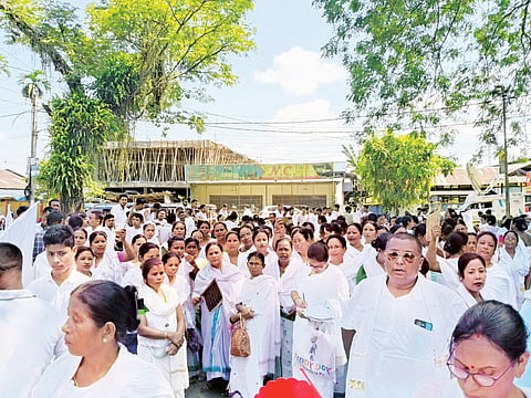 The members of five Mottock organisations All Assam Mottock Sanmilan, All Assam Mottock Yuba Chatra Sanmilan, All Assam Mottock Mahila Parishad, All Assam Mottock Yuba Chatra Parishad and All Assam Mottock Students’ Union assembled infront of DC office.
