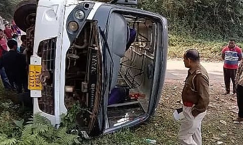 The bus bearing registration number AS-09AC-3477 was carrying passengers from Langhamphi (Assam-Meghalaya border) to Hojai.