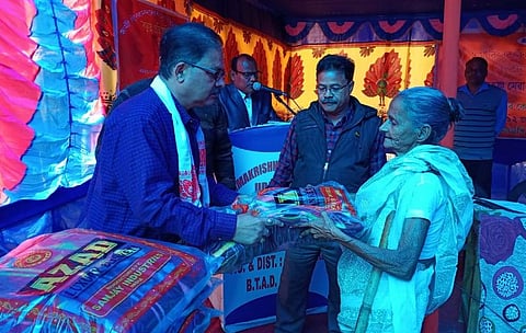 The open session was presided over by Jadavendra Roy, president of Ramkrishna Sewashram, and it was addressed by Shekhar Dev, district coordinator of Nehru Yuva Kendra, Udalguri, and R Sapkota, senior scribe of Udalguri district, as chief guest and appointed speaker respectively. In their speeches, both the speakers spoke on the ideology of Swami Vivekananda and appealed to the youth to follow his teachings to make India a strong nation. The programme concluded with ‘Nara-Narayan Sewa’ in which more than 20 poor villagers were donated warm winter clothes.