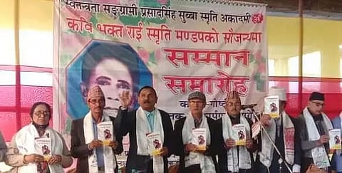 UDALGURI: An original Nepali poetry book titled Atmanusandhan, written by Anjan Baskota, was released by Mahakabi Mohan Dukhun (Siliguri) in the second session of the award distribution ceremony organized by the freedom fighter Prasad Singh Subba Memorial Academy at Chandmari, Tezpur on January 31 with critic Gyan Bahadur Cherty in the chair.