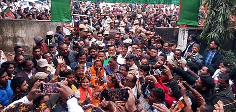 TINSUKIA: The newly-inducted minister Sanjay Kishan was accorded a grand welcome on his arrival at Tinsukia on Monday. The minister was greeted by jhumur dancers at Tinkunia point and escorted in a procession to the District Library Auditorium where a public felicitation programme was organized by Tinsukia district committee of BJP. More than 3,000 people gathered to welcome him amid cheers from BJP supporters. While various organizations belonging to the party’s committees and cells felicitated the minister, Suren Phukan, MLA of Digboi, Monoj Manki of Chah Morcha and Bhaben Baruah were present among others in the programme which was chaired by Lokheswar Moran, district BJP president.
