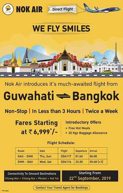 Nok Air to launch the much-awaited Guwahati to Bangkok and Bangkok to Guwahati flight services on September 22, 2019. As announced by the airline staff, the Nok Air flights will operate between the two destinations twice a week. With fares starting just at Rs. 6,999, planning a vacation to Bangkok will be much easier for the holiday goers now.