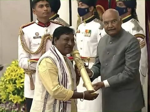 DOOMDOOMA: Noted singer from tea-tribes' community Jhumoir Samrat Dulal Manki was awarded Padma Award by President Ram Nath Kovind at a glittering function held at Rashtrapati Bhavan on Tuesday. He was given this award in recognition of his immense contributions toward folk music especially those that belong to tea-tribes community of Assam.