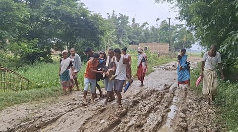 DEMOW: A patient, suffering from stomach pain, dysentery, and vomiting, had to be carried by his family members for 3 km before he could take an e-rickshaw to the hospital on Thursday. The incident is from Maharani Gaon in Demow, where the Rupahibam-Nabil connected road is in a poor condition due to which the people of the gaon are suffering. Due to rain in the last few days, mud and water have come up on the road which is around 4 km long, due to which the people are facing serious problems while passing through it.