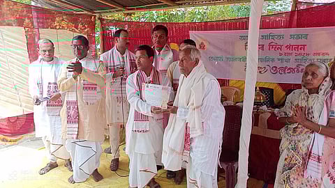In this connection, the Telahi Kamalaboriya Sakha Xahitya Xabha, one of the active branch units of the AXX, feted Sarunath Borah of Khaga area and Rabiram Borah of Kalita Gaon on Thursday at their residences respectively. On this occasion, the felicitation programme was held at Sarunath Borah's residence under the management of secretary Mintu Sarmah in the presence of the dignitaries of the literary body. The programme started with the lighting of ceremonial lamp by poet Haren Hazarika and a song sung by Dhyanshish Borah. Former president Prashanta Kumar Borah and artiste Satyanath Phukan highlighted the biography and social contributions of Sarunath Borah and Rabiram Borah respectively in the separate programmes. Both persons were feted with gamosa, cheleng sador, bundle of books and citation given by Axam Xahitya Xabha and Telahi Kamalaboriya Sakha Xahitya Xabha. Cultural programmes were also held with the performances of songs, creative dance items and Bihu dance items on this occasion in the residences of both feted figures.