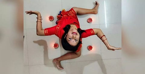 PATHSALA: A 29-year-old woman from Pathsala posed as 'Swastika' during this Diwali celebration. The photo went viral on social media. 'Swastika' is a symbol of prosperity. The word is derived from the Sanskrit svastika, which means "conducive to well-being."