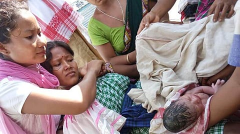 Because of the poor road connectivity in Ghunasuti and dereliction of health services concerned in the district, a mother gave birth to her child under the open sky at Ghagar Ghat on the bank of Subansiri River on Wednesday while she was on the way to North Lakhimpur Civil Hospital (NLCH).