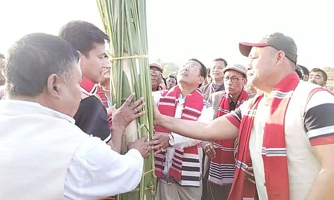 On February 17, the festival will be celebrated at the playground of Brahmaputra College of Dhakuakhana under the auspices of the State Government. On this occasion, State Panchayat and Rural Development and Cultural Affair Minister Naba Kumar Doley erected the lai-khuta at the festival venue on February 8 in the presence of Cultural Department Officer Pabitra Kumar Pegu and other administrative officers of the subdivision. Then the minister took part in a meeting with the administrative officers in order to chalk out plans and programmes to conduct the event with success. On the other hand, the Lakhimpur district administration organized a review meeting with the festival organizing committee and the sub-committees in the Brahmaputra College auditorium on Wednesday in this connection. Deputy Commissioner Dr. Jeevan B, Development Deputy Commissioner Manoj Kumar Baruah, Superintendent of Police Longnit Terang, Additional Superintendent of Police Pranab Kumar Pegu, Cultural Officer Pabitra Kumar Pegu and the district officers of several departments were present in the meeting wherein detailed discussion over various aspects of the celebration of the festival, including the maintenance of law and order, was held.