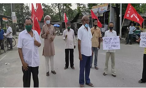 BONGAIGAON: Protesting against three 'anti-farmer' bills, Nikhil Bharat Krishak Sabha and CITU jointly staged a demonstration on Thursday at Bijni in Chirang district.