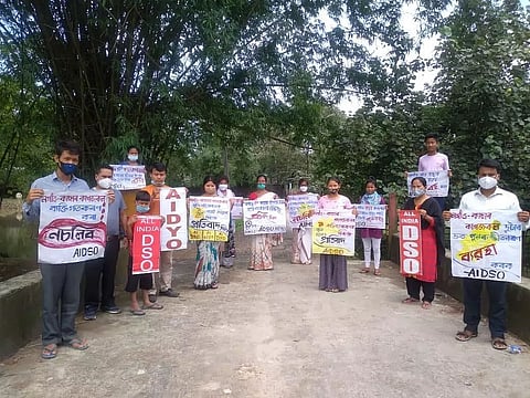 LAKHIMPUR: The Lakhimpur district units of All India Democratic Students' Organization (AIDSO), All India Democratic Youth Organization (AIDYO) and All India Mahila Sanskritik Sangathan (AIMSS) staged massive protest programme opposing the government's move taken towards privatizing the Cachar Paper Mill and Nagaon Paper Mill.