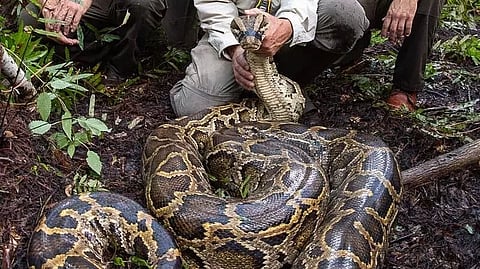 DEMO: A python was rescued in Samarajan Gaon near the Panidehing Bird Sanctuary on Thursday. A python was rescued on Thursday from the residence of Nil Kumar Das, a resident of Samarajan Gaon near the Panidehing Bird Sanctuary. The python was under the bottle gourd tree in his premises. He immediately informed the Sarugua Forest Beat Office and then the forest officials came and rescued the python. The python was 12-foot long and 25 kg in weight. It was later released in Panidehing Bird Sanctuary.
