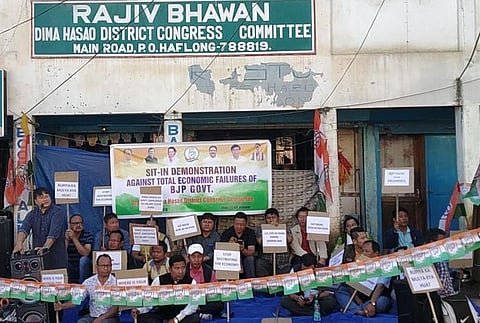 Haflong: In protest against the total economic failure of the BJP government, the Dima Hasao District Congress committee staged sit-in in front of Rajiv Bhavan at Haflong on Saturday.