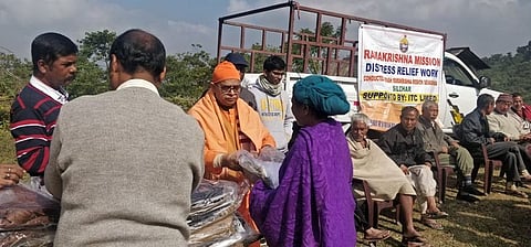 Haflong: With the motto ‘Seva’ of the Ramakrishna Math and Mission, the Ramakrishna Mission Sevashram Silchar, in collaboration with Sri Ramakrishna Seva Samity Haflong, had organized a distress relief camp at various places like the Ramakrishna Seva Samity premises, Haflong, Harangajao Durga Mandir, Boro Chenam and Michidui recently, said Bisweswar (Babla) Chakraborty, secretary of Sri Ramakrishna Seva Samity, Haflong.