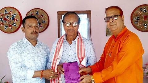 On behalf of Sibsagar Press Club, members Himanshu Neog and Monirul Islam Bora felicitated Prema Gogoi with a traditional Phulam Gamusa and a bundle of books as birthday presents.