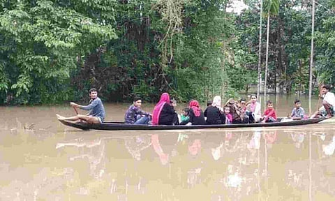 According to reports, more than 15 villages are under the grip of floods for the past 24 hours in Kalaigaon revenue circle. In the Kalaigaon area, Noa River has overflown due to heavy rainfall for the past 24 hours resulting in flash floods. Water entered several houses and about 50 families have not been able to cook their meals on Sunday. Moreover, the embankment along River Noa has given way under the mounting pressure of flood water and it was breached at No. Shingrimari. The Mangaldai-Bhutiachang road near Patrol Pump at Garubandha was reeling under knee-deep water on Sunday and a portion of the road has been washed away. The major part of Kalaigaon revenue circle was also under knee-deep water along with the Kalaigaon Town LP School on Sunday.