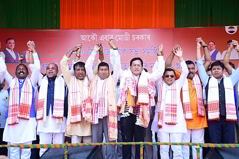 Sarbananda Sonowal, who is a native of Dibrugarh constituency, took part in a roadshow as he moved from the airport to the Mancotta field where he later addressed a massive rally. More than 40,000 people gathered at the historic Mancotta field on Monday as Sarbananda Sonowal expressed his gratitude and respect to the people of Dibrugarh for the unconditional love and support bestowed upon him. During the entire period, from the arrival at the airport, through the road show to the public rally, the people gave ‘Aamar Sarba Da’ as the slogan to welcome Sonowal.