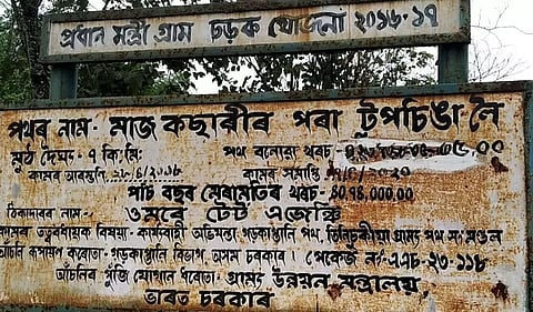 According to reports, the foundation stone of the proposed road to be constructed at the cost of Rs 7,82,99,853 was laid jointly by Pradhan Baruah, MP of Lakhimpur, and Bolin Chetia, MLA of Sadiya, on March 10, 2018. The contract was awarded to an Arunachal based firm. The road was supposed to be completed in April, 2020. The villagers alleged that not even 50 per cent of the work had been completed and more so, a newly-constructed culvert caved in recently in the middle of the road that created a big pothole. Alleging misappropriation of fund, the villagers told media persons that even the sanctioned amount was doctored with overlapping figures in roadside display which led to further confusion among the villagers. They even did not rule out involvement of departmental staff in embezzlement of fund. The villagers apprehended that the very first wave of flood of the season would render the road totally unusable. The Arunachal firm had given sub-contract to few local youths who allegedly used sub-standard and inferior materials, villagers alleged.