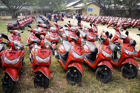 Goalpara: State Irrigation Minister Ashok Singhal on Friday symbolically distributed scooties in Goalpara town under the Pragyan Bharati scheme to few selected meritorious students who had excelled in the last HS exam.