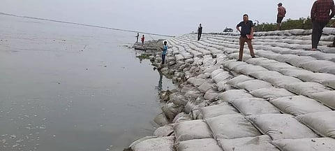 DOOMDOOMA: Severe erosion is taking place at Hatighuli area near Dholla in Tinsukia district by the Dibang river- a important tributary of the mighty Brahmaputra. According to report, Hatighuli has been hit by heavy flooding of the Dibang and Brahmaputra rivers. Consequently, sand-filled geobags and megabags used for protective measures were washed away. It was mainly due to lack of proper maintenance by the department, alleged Binod Kedia, president of Dibrugarh -Tinsukia Flood and Erosion Resistance Struggle Forum(DTFERSF).