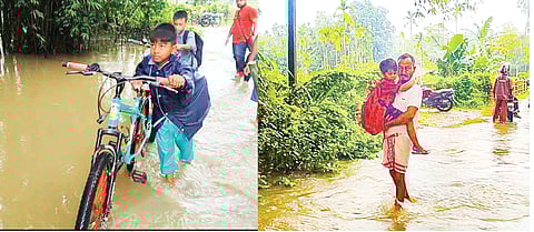 PATHSALA: The flood situation in Bajali has turned severe due to incessant rains over the past few days. An embankment of the Kaldiya River was breached by the current wave of floodwaters, risking the 100-year-old Helona Raas Temple and its surrounding areas. The road connecting Pathsala to Bargandubi to Sarthebari is now submerged near the Helona Temple which is adjacent to the Kalita river.