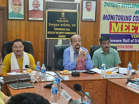 MANGALDAI: State Innovation and Transformation Aayog (SITA) Vice-Chairman Ramen Deka visited Darrang district on Friday to review the implementation of various development schemes undertaken by the various development departments for the welfare of the people. In this regard, a meeting was held at the conference hall of the Deputy Commissioner, Darrang which was attended by Deputy Commissioner Pranab Kumar Sarmah, MP Dilip Saikia of Mangaldai HPC and MLA Dr P.Rajbongshi of Sipajhar and by all heads of development departments.