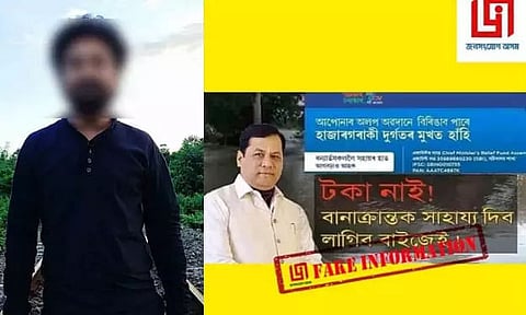 Through the said Facebook post, some unknown culprit had tried to manipulate the general people of Assam to contribute through a bank account for raising funds for the flood-affected people. In the said post, the Chief Minister of Assam's portfolio and Government of Assam's logo had been fraudulently used for creating a post appealing to the general people of Assam that the Government's coffers are empty and general citizen's contribution is a must to save Assam from the havoc of floods.