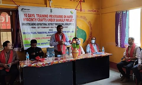 HAILAKANDI: A 10-day skill development training on water hyacinth crafts under SANKALP programme got underway here on Monday. The training programme was inaugurated by Additional Deputy Commissioner, Narendra Kumar Shah at Subho Cluster Level Federation under the auspices of Assam State Rural Livelihoods Mission (ASRLM), BMMU, Katlicherra.