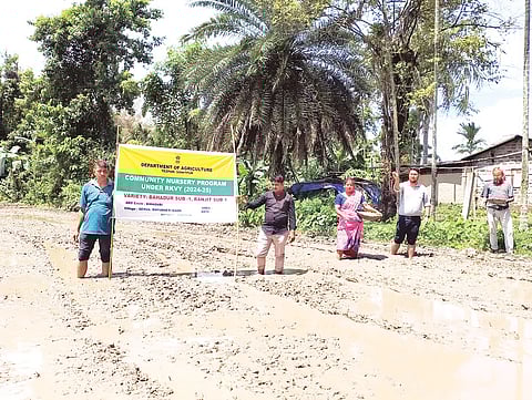 The initiative officially began on Tuesday with a ceremonial seed sowing event at Bhoroli Chapori village under the Silabandha Agriculture Circle. The programme was inaugurated by District Agriculture Officer Naren Chandra Sharma, with the participation of Dr Zakir Hussain, Senior Agriculture Development Officer Ajit Pathak, agriculture officers Nitumoni Mahanta and Mantrishna Rajkhowa, District Media Expert Bitupan Saikia, and members of the local farming community. The sowing was carried out at the farmland of Chowkighat Farmers Producer Company, where paddy varieties like Bahadur Sub-1, BINA-10, CR Dhan-310, CR Dhan-802, and Numoli were planted. These nurseries will serve as the source of free seedlings to be distributed to farmers once floodwaters recede, ensuring quick resumption of cultivation.