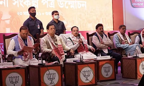 GUWAHATI: The Bhartiya Janata Party BJP today released its party manifesto- "Sankalpa Patra", wherein it has pledged to bring in a corrected NRC to secure and protect Assam. While releasing the party manifesto, National BJP President JP Nadda stated, "We are committed to bringing in a corrected National Register of Citizens NRC to secure and protect Assam…We will protect genuine Indian citizens and detect illegal infiltrators so that Assam can remain Assam's."