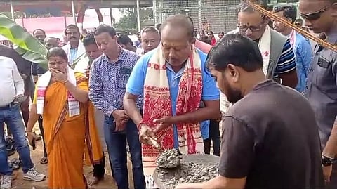 JAMUGURIHAT: Sootea MLA Padma Hazarika on Wednesday laid the foundation stone of Sri Sri Durga Mandir at the playground of Dekorai TE on the northern part of Jamugurihat. Notably, the Durga Mandir will be constructed with the financial grant of rupees ten lakhs allotted by Pallab Locahn Das, MP, Tezpur HPC. Addressing the gathering, MLA Hazarika declared that he would donate an ambulance to the Dekorai TE for medical purpose of the labourers. The event was attended by the manager, assistant manager, Bulu Ahmed, Ashok Gupta, Manoj Gupta, Tapan Choudhary among others.