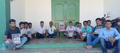 After paying homage, the members of Sootea Press Club staged a sit-in in front of Neelema Bhavan. The members demanded a high-level probe into Bhuyan's demise.