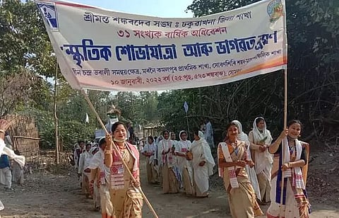The event was hosted by Sankar-Madhav Anchalik Sakha of the Srimanta Sankardev Sangha under the Subansiri area of Paschim Dhakuakhana at Nabin Chandra Bhorali Samanway Kshetra from January 8. On the concluding day, a 'Bhagawat Shobhayatra' (Bhagawat Procession) was taken out carrying the Bhagwat Purana, the highly revered holy scripture of Hindu religion, with the participation of hundreds of devotees and various cultural groups. In addition to Nam-prasanga, bhaona and other Sankardev created culture, folk culture of almost all the indigenous communities of Assam were showcased in the procession manifesting the ideology of 'Unity in Diversity'. The procession covered almost 8km distance in its round.