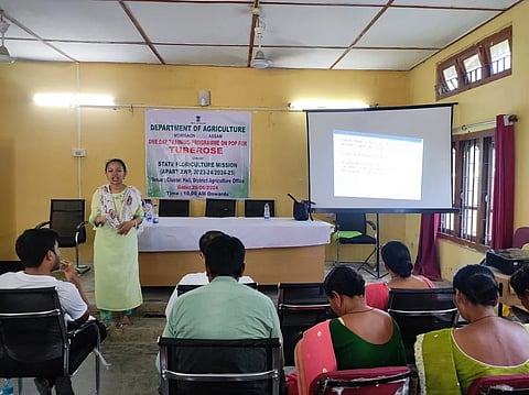 Morigaon: A special training on cultivation methods and market addition of Tuberose (Rajanigandha flower) and Flamingo Lily (Anthurium flower) was organized under the State Floriculture Mission in collaboration with Morigaon District Agriculture Department. The training was held at the District Agriculture Office auditorium on Wednesday. About 35 farmers were given training on how to become self-dependable by cultivating anthurium and Tuberose flowers with modern methods. The trainers provided training to the farmers on weather and climate required for anthurium and Tuberose cultivation, soil properties, varieties, market prices and demand, precautions and processes to be followed for cultivation, use of fertilizers and pesticides etc. The training programme was moderated by the Assistant Director of Agriculture Tapan Kumar Brahma in presence of the District Agriculture Officer Ashok Kumar Sharma. Horticulture Specialist of KVK Dr. Sukanya Gogoi, District Agriculture Department’s Programme Officer Dr. Punam Saikia attended the programme as resource persons. The training was conducted by District Horticulture Coordinator Shyam Jyoti Bargohai, District Media Expert Gautam Kumar Nath and concerned officers and employees.