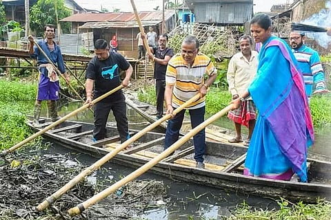 Responding to the call of Silchar BJP legislator Dipayan Chakraborty, DC Jalli along with BJP district president Bimalendu Roy and officials of various line departments were also present and took stock of the sewerage channel's work. They themselves tried to clean the drains with the help of a boat in Ranghirkhal.