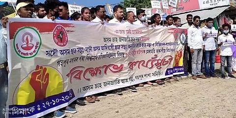 BISWANATH CHARIALI: Several students' organisations on Wednesday staged a protest programme at Gohpur demanding early completion of repairing and construction of the National Highway 15 from Gohpur to Biswanath Chariali. The highway has almost collapsed in the name of four lane road construction and the condition has become very pathetic as the construction of about 57 km long road from Biswanath Chariali to Gohpur has been going on for six years.