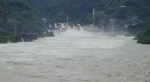 LAKHIMPUR: Subansiri Lower Hydroelectric Project (SLHP), being constructed by NHPC at Gerukamukh located in the Assam-Arunachal border area in Dhemaji district, is once again under the wrath of nature. Due to heavy downpour in the past few days in the State of Arunachal Pradesh, the water level of the River Subansiri started to over flow in the catchment area of the SLHP. As a result of it, water has been rolling over the main dam of the project since Thursday creating havoc in the downstream area of the river.
