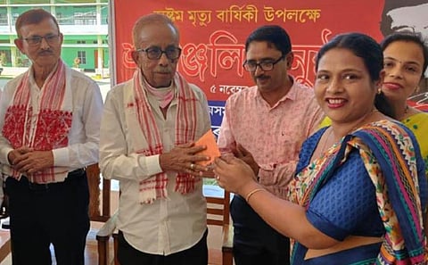 On this occasion, the teachers’ unit of Lakhimpur Commerce College organized a commemoration programme in a befitting manner. It began with the lighting of the earthen lamp by senior professor Gopal Kumar Chetri and paying floral tribute to the portrait of the bard by senior professor Mahesh Chandra Bhagawati. The open session kicked off with a Bhupendra Sangeet performed in a chorus.