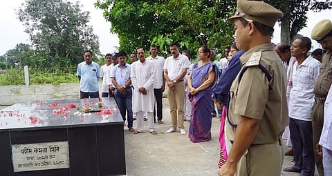 JORHAT: Freedom Fighters’ Association, Jorhat branch, Open Air Jail authority, Jorhat Central Jail authority and prisoners paid tribute and attended an all-prayer meeting on Independence Day at the tombs of Swahid Kushal Konwar and Kamala Miri who were hanged in Jorhat Jail and later consigned to flames at the premises of the Mahendra Nagar Open Air Jail beside the Central Jail, Jorhat.