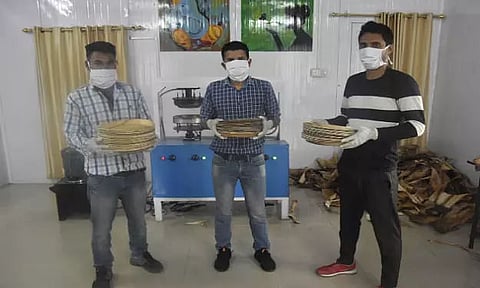 The raw material for the plates is collected from farms located in remote villages and the finished product is supplied to establishments and institutions as far forward as possible. The success of the pilot project can be gauged from the response of the locals who have requested to replicate the project in many more areas. The former insurgents' families are happy since it offers them an opportunity for dignified earning. The villagers are also excited since the tamul leaves and barks, which were earlier thrown away as waste, are being commercially sold. The local youths are being engaged for collection and stocking of raw material.