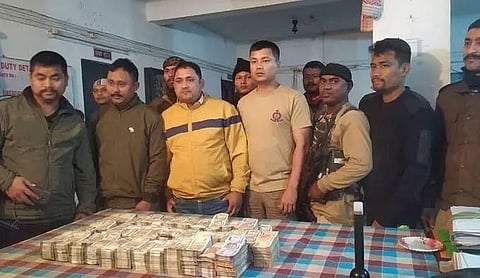 Based on specific input, a police team led by DSP (probationer) Partha Pratim Duarah and OC Bordumsa intercepted three vehicles, including a truck coming from Arunachal Pradesh, and recovered cash of Rs 86.33 lakh, 603 cartons of liquor concealed beneath sugar bags and detained eight persons, including a minor.