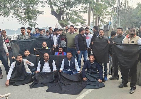 SIVASAGAR: Protests against the controversial Citizenship (Amendment) Act continued on Thursday with black flags shown to Bharatiya Janata Party MP from Jorhat Parliamentary Constituency Topon Kumar Gogoi by the All Assam Students’ Union (AASU) activists in Sivasagar.