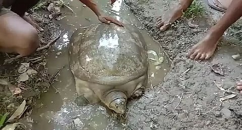 "We have taken the tortoise for its safe custody and after examining its prima facie health will make arrangements for its release in the pond of Satra temple of Darrang," said a forest official of Tangla Forest Beat Office.
